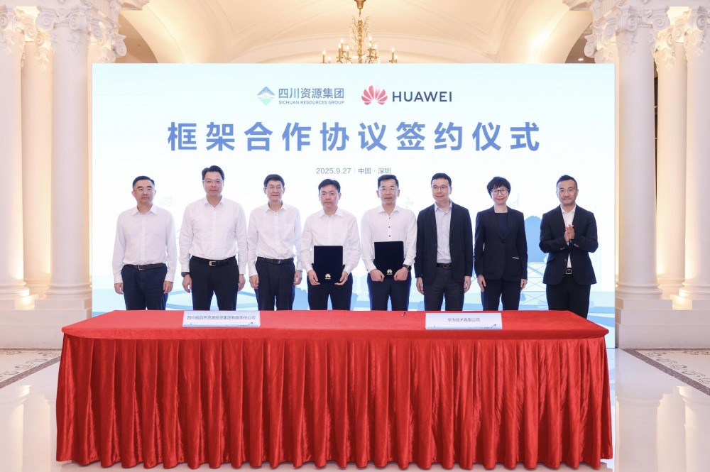 【中国,深圳,2025年9月27日】四川省自然资源投资集团有限责任公司(以下简称“四川资源集团”)与华为技术有限公司(以下简称“华为”)签署框架合作协议。根据协议,双方将在智慧矿山规划和建设、人工智能赋能地质安全、ICT基础设施自主创新、数字化转型和人才培养等领域开展合作。